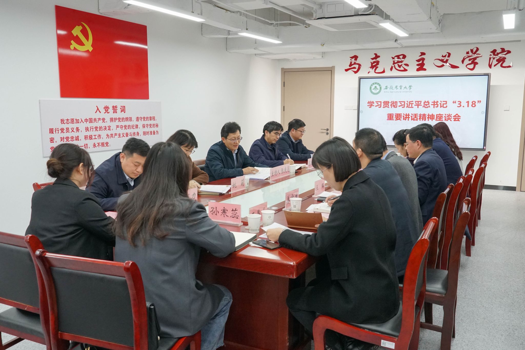 完善政策支持。校第七次党代会以来,学校先后印发《安徽农业大学思想政治理论课教师专业技术职务任职资格申报条件》《安徽农业大学关于进一步加强马克思主义学院建设的若干举措》等系列文件,对全校思政课建设作出了全方位规划、制度性安排,推动了思政课建设不断迈上新台阶。同时,学校思政课建设激励保障机制不断完善,专职思政课教师岗位津贴全面兑现,思政课教师职称单列计划、单设标准、单独评审全面落实,有效激发了思政课教师的积极性和主动性。