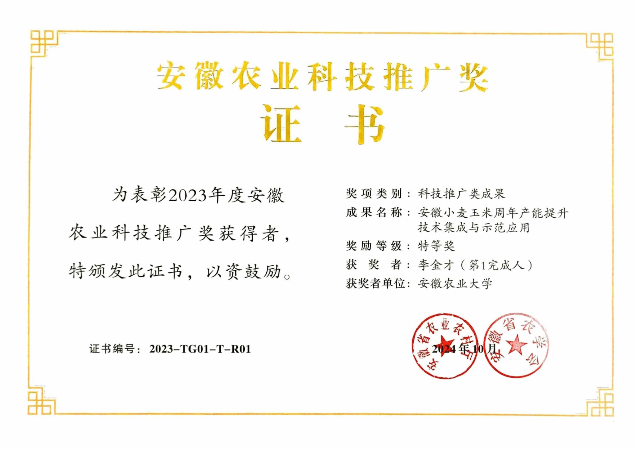 科学研究水平持续攀升。近年来,学院聚焦自身优势特色,瞄准粮食产业,深入开展集智攻关,以创新成果赋能产业转型升级,为推动安徽省粮食丰产发展贡献“高校智慧”。主持获省部级科技奖4项,其中安徽省农业科技推广特等奖1项。主持“十四五”国家重点研发计划课题等省部级以上科研项目百余项,累计科研经费1.44亿元;发表研究论文290余篇,其中TOP期刊发表论文33篇。育成农作物新品种34个。随着作物学学科入选安徽省应用型高峰培育学科,作物遗传育种学获批安徽省特色学科,安徽省粮食作物协同创新中心等一批重大平台获批立项,为学院开展有组织的科学研究提供了更加坚强的支撑。
